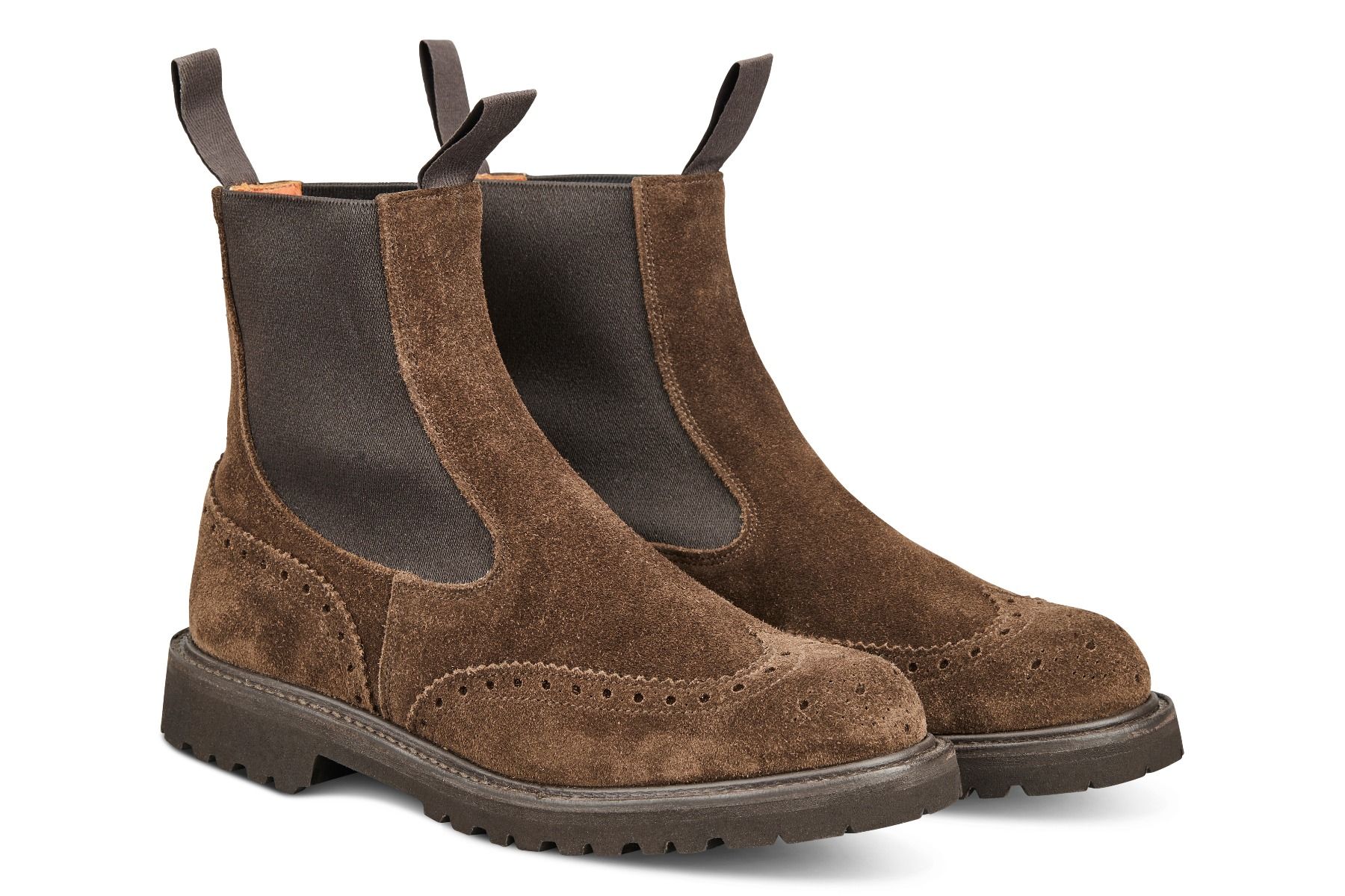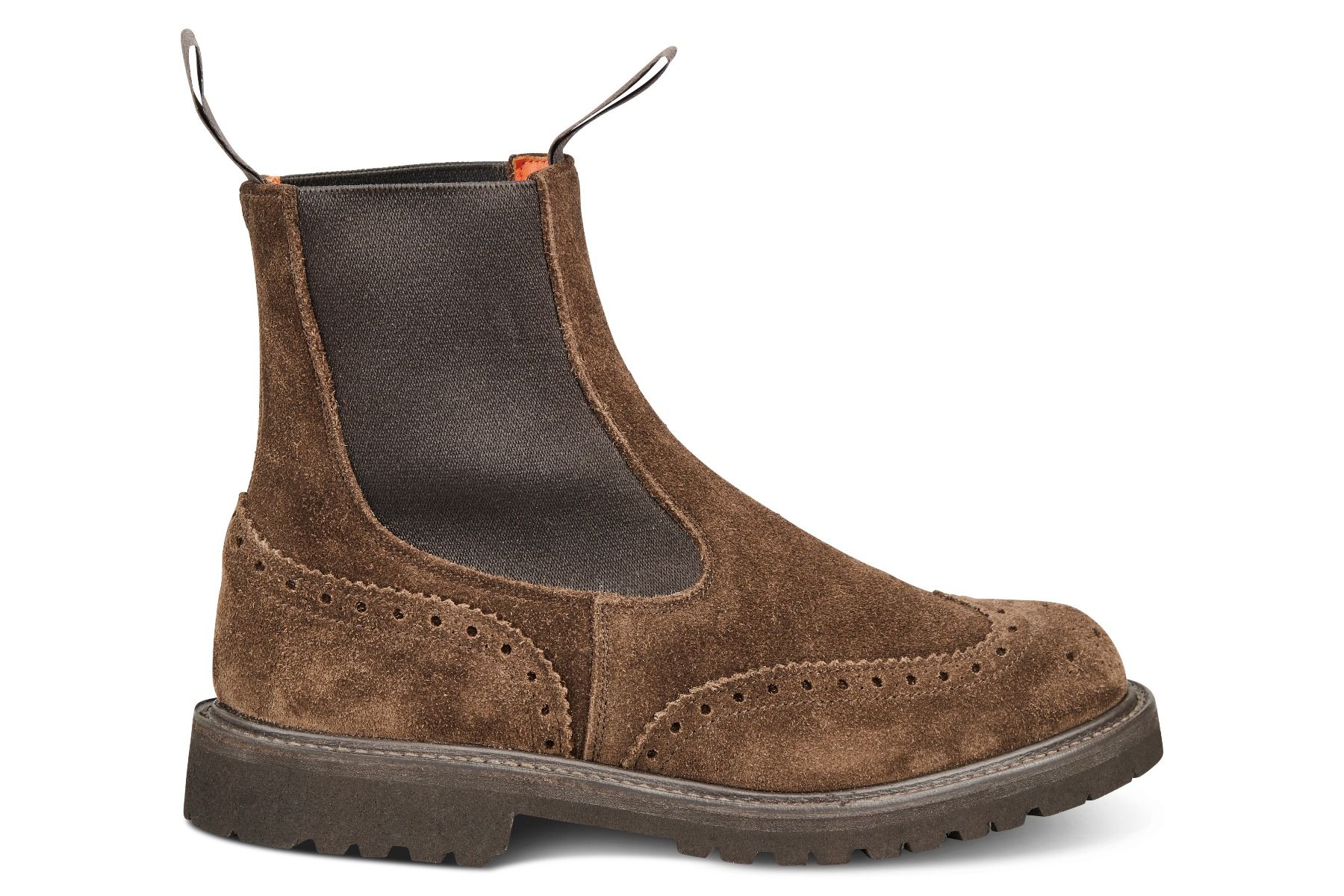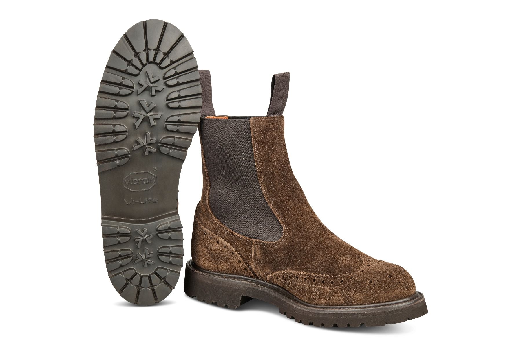 这是一款传统上易穿脱的“一脚蹬”乡村漫步靴,最初设计是为了方便乡村地区的活动,如骑马。该款靴子通常被称为切尔西靴。我们的Silvia靴子采用具有标志性的Tricker’s雕花细节,靴子两侧的弹性松紧确保它们易于穿脱。防雨贴边设计在鞋面与鞋底之间起到进一步防水的作用。